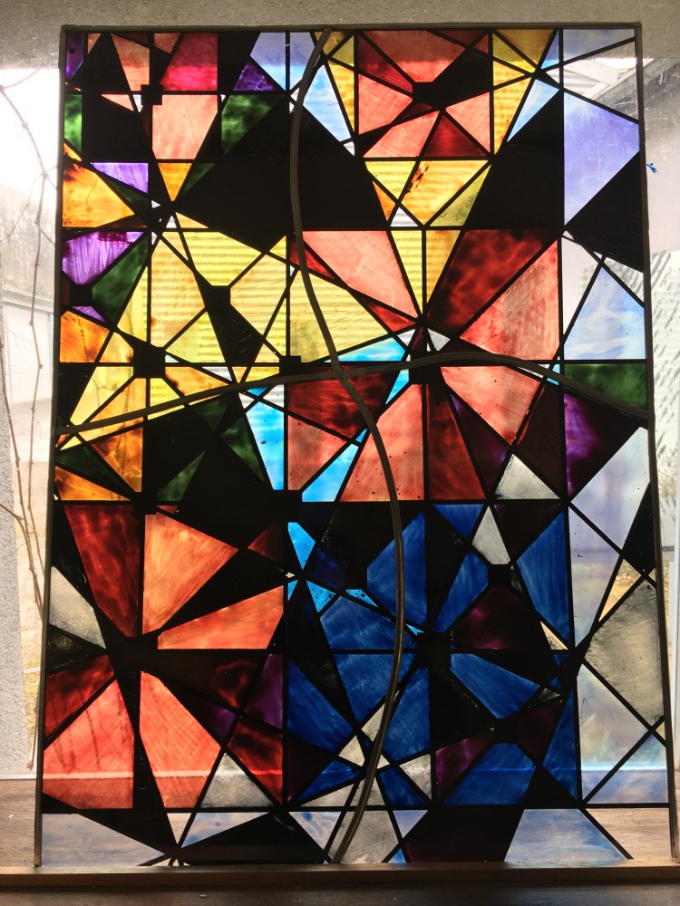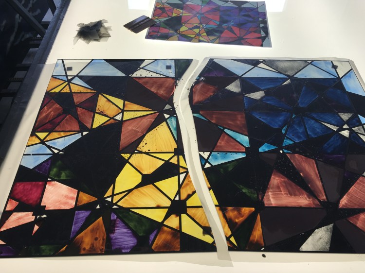 Ich lernte die Vielfalt von Kunst im Licht mit leuchtenden Farben sowie die Tradition und Moderne kennen: Mich inspirierten die Fenstern im Paderborner Dom. Die fotografierten Muster verschob ich und erstellte einen Entwurf – ein Grundraster – den ich plottete. Dieses Grundraster wurde farbig ausgestaltet und diente als Vorlage für den Bau des Fensters. Insgesamt habe ich 4 Wochen an meinem „Kirchenfester“ gearbeitet und meine Leidenschaft für das Material Glas entdeckt.