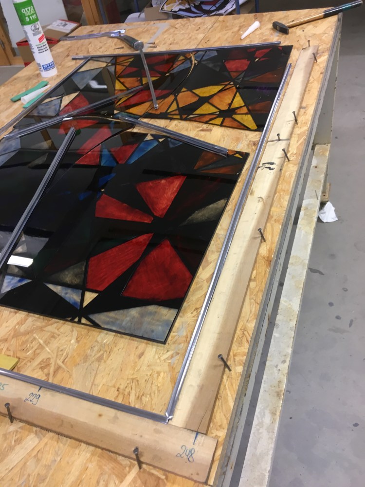 Im Zuge meiner praktischen Abschlussprüfung an der Uni Paderborn habe ich mich mit Kirchenfenstern auseinandergesetzt und mein Projekt speziell von den Fenstern im Paderborner Dom inspirieren lassen. Mein besonderer Dank geht an die Glasmalerei Peters, die es mir ermöglicht hat, mit Fensterglas, Blei und spezieller Glasmalfarbe zu arbeiten.