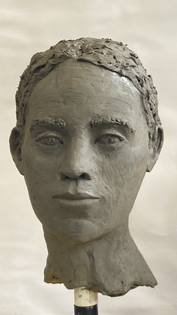 Mein künstlerisches Schaffen hat sich in den letzten Jahren immer mehr in Richtung Bildhauerei entwickelt: Nachdem ich erste Erfahrungen mit dem Modellieren des menschlichen Torsos in Ton an der Scuola di Scultura gesammelt hatte, wollte ich mich dem Modellieren menschlicher Gesichter widmen. Dazu hatten mich die Werke von Elisabeth Frink in der Ausstellung „Man is an Animal“ im Gerhard Marx Haus in Bremen inspiriert. Die überlebensgroßen Köpfe erzeugten bei mir eine ehrfurchtsvolle Bewunderung für das klassische Bildhauermaterial Bronze; ich wollte meinen eigenen Bronzekopf gießen. Somit machte ich mich erneut auf die Reise zur Scuola di Scultura in der Schweiz, um bei der Künstlerin Annegret Kohn einen Kurs mit dem Thema Köpfe modellieren in Ton zu absolvieren und meine Fähigkeiten im Darstellen verschiedener Modelle auszubauen.