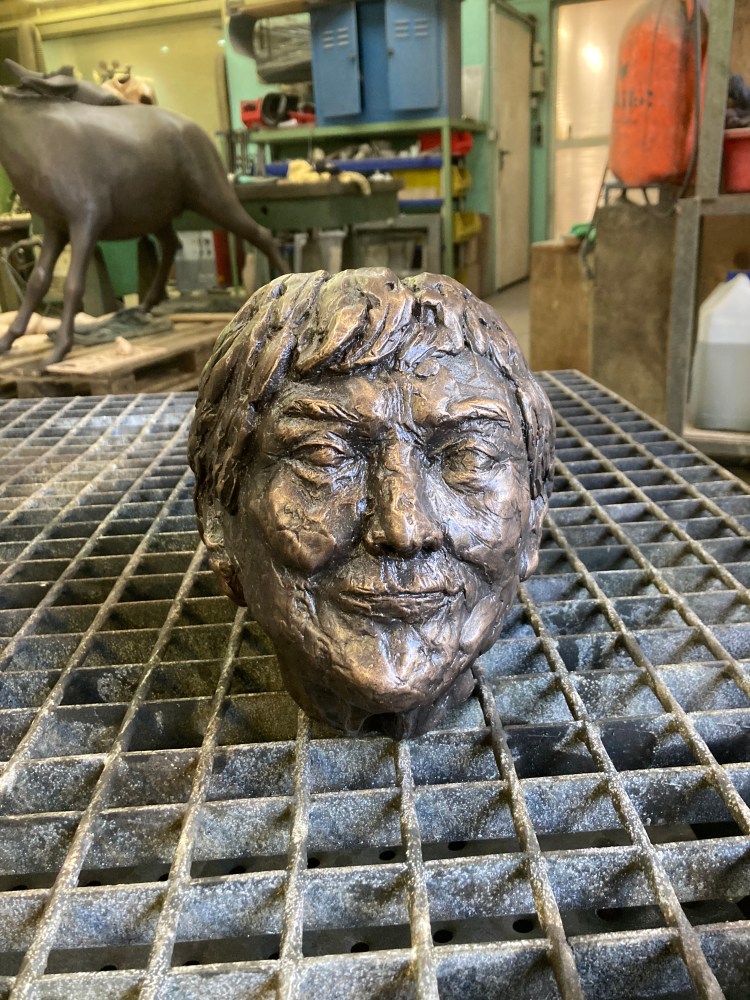 Besonders gut gelungen ist mir ein Abbild einer 96-jährigen Schweizerin aus dem Tessin, die sich für den Kurs als Modell angeboten hatte. Nachdem der Kopf in Wachs fertigstellt war und trotz sehr sommerlichen Temperaturen den Weg bis nach Deutschland überstanden hatte, ermöglichte mir die Kunstgießerei Anft das Verfahren des Bronzegießens selbstständig umzusetzen: Ich durfte alle Arbeitsprozesse, wie das Vor- und Nachbereiten der Skulptur – mit Ausnahme des Gießens an sich- selbst übernehmen. Mit dem Ergebnis bin ich sehr zufrieden.