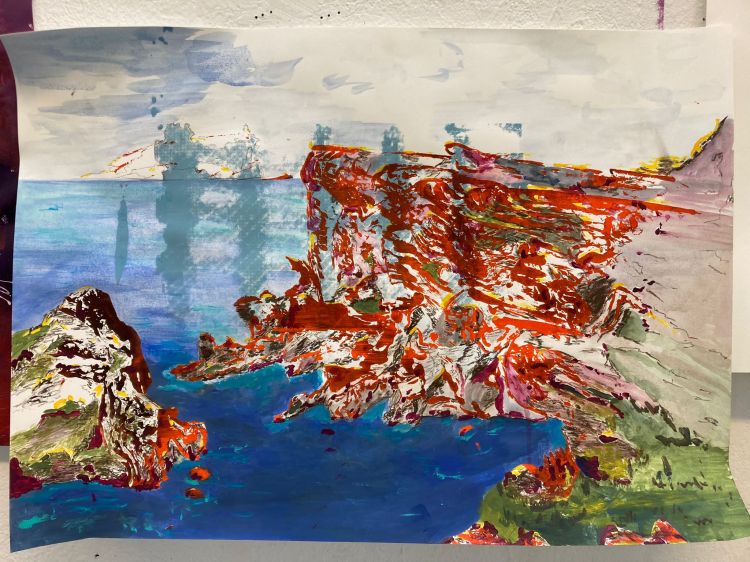 Ein Besuch des Burren College of Art in Ireland, während meines Roadtrips, und insbesondere der Studiengang Art and Ecology löste in mir die Idee aus, die Cliffs of Moher mit ihren Gesteinsschichten im Siebdruckverfahren auszudrücken. Als Motiv dienten mir meine Fotos der wundervollen irischen Steilküsten.