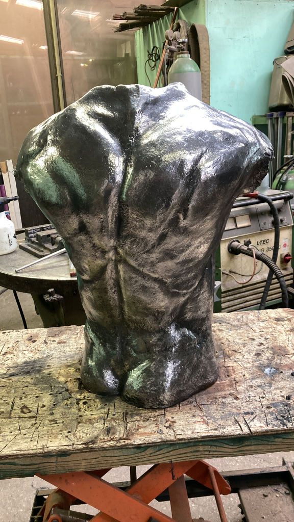Als Vorlage für meinen Torso aus Aluminium diente mir „Gotthard“ der Torso aus Ton, den ich an der Scuola di Scultura in Peccia – in der italienischen Schweiz – umgesetzt hatte und dadurch erste bildhauerische Fertigkeiten erlernte.