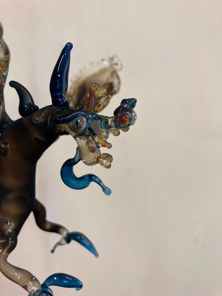 In dem Kurs von Julie lernten wir unsere Fähigkeiten im Umgang mit Glas zu trainieren und verschiedene bildhauerische Techniken. Vor der Lampe ließen wir aus weichem Glas und Borro Silikatglas Figuren, Drachen, Tiere und mehr entstehen.